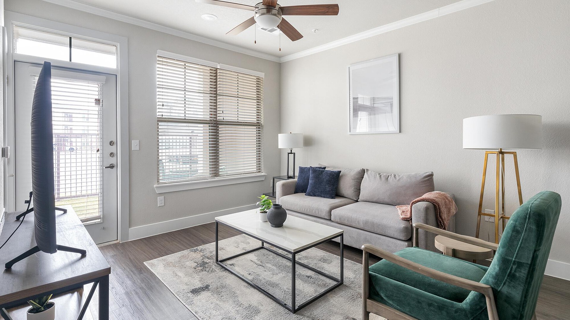 When you enter your Landing home for the first time, you'll notice the modern tones throughout, from the open concept floor-plan to the sleek kitchen with stainless steel appliances. Our included furniture and decor are expertly selected and placed for this individual layout, and the mounted Samsung Smart TVs are ready for your enjoyment. Finally, your home is filled with our convenient amenities, from the luxurious bedding to the completely stocked kitchen. Every element of your new home invites you to step right into a hassle-free living experience. (ID1407370)